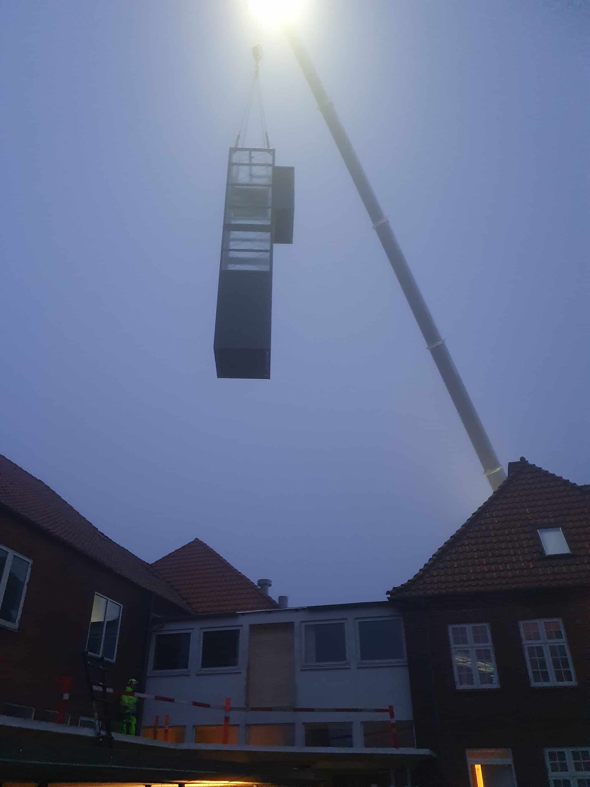 Da borgere i mange aldre færdes i huset, ønskede man at etablere en elevator, så også seniorer har nemt ved at komme omkring. Via licitation blev Toft Entreprise A/S hyret ind til at stå for indbygningen af et elevatortårn i den eksisterende bygning. Skakten går fra kælder til første sal og spænder således over i alt tre etager.